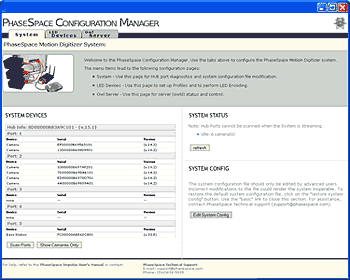 This is the main interface to configure and setup the IMPULSE system. Written in PHP, Configuration Manager can be accessed directly through any web browser. Therefore, this allows the motion capture system to configured remotely through a network or even the internet.
