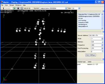 This is the "Master" program, it acts as the primary client to the IMPULSE system. Clicking a button starts the system then multiple client nodes are able to connect as slaves. Master also acts as the main recording program. Master outputs in our own native .RPD format as well as .C3D.